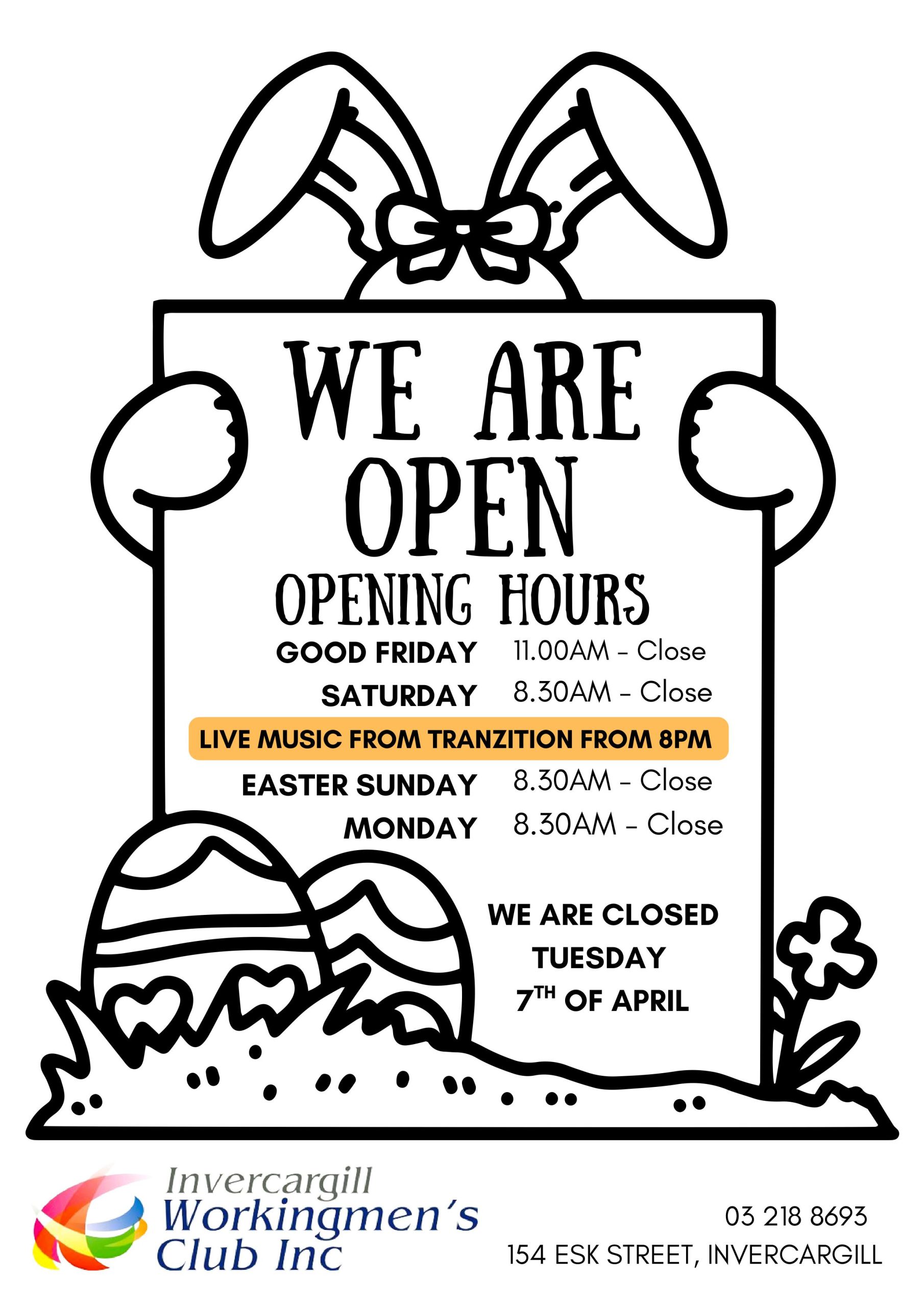 The Invercargill Workingmen's Club extends a warm welcome to all members, affiliated members and members’ guests.